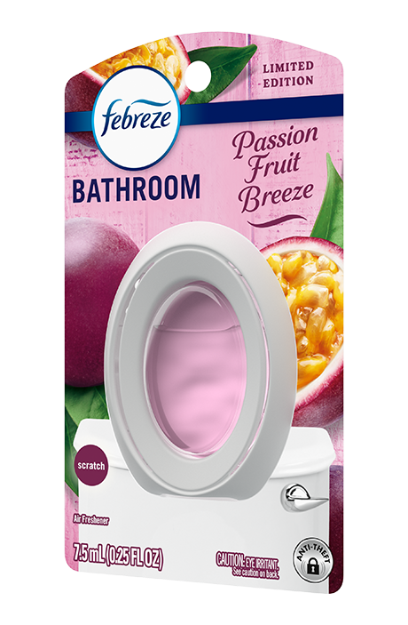 Indulge your senses with the intriguingly exotic scent of Febreze BATHROOM Passion Fruit Breeze. With lush fruity notes and hints of the tropics, this one’s sure to squeeze its way into your freshness rotation.