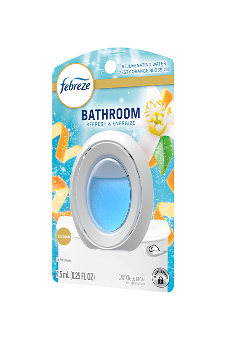Reinvigorate your soul with Febreze BATHROOM Refresh & Energize. One sniff and you’ll feel your mood lighten thanks to the restorative scents of rejuvenating waters and zesty orange blossoms… It’s a fresh pick-me-up that won’t let you down.