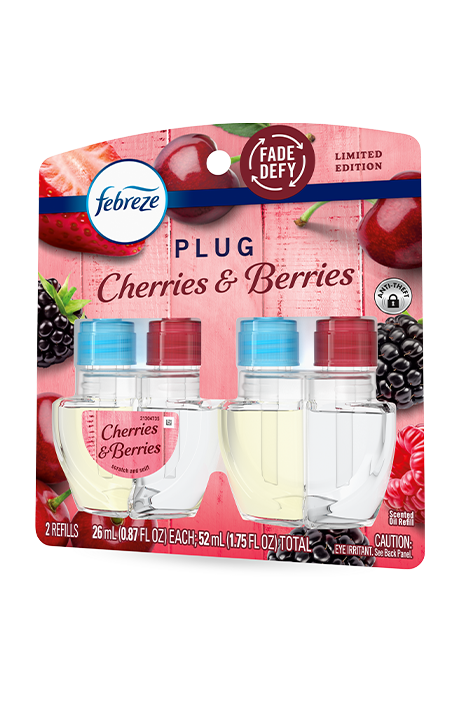 Tell odors they’re toast with a scent that’s sure to be your jam. Febreze PLUG with Fade Defy Technology Cherries & Berries transforms any space with the delicious aromas of juicy red cherries, strawberries, and raspberries.