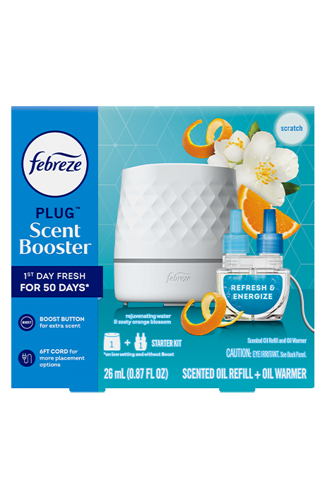 Reinvigorate your soul with Febreze PLUG Scent Booster Refresh & Energize. One sniff and you’ll feel your mood lighten thanks to the restorative scents of rejuvenating waters and zesty orange blossoms… It’s a fresh pick-me-up that won’t let you down.
